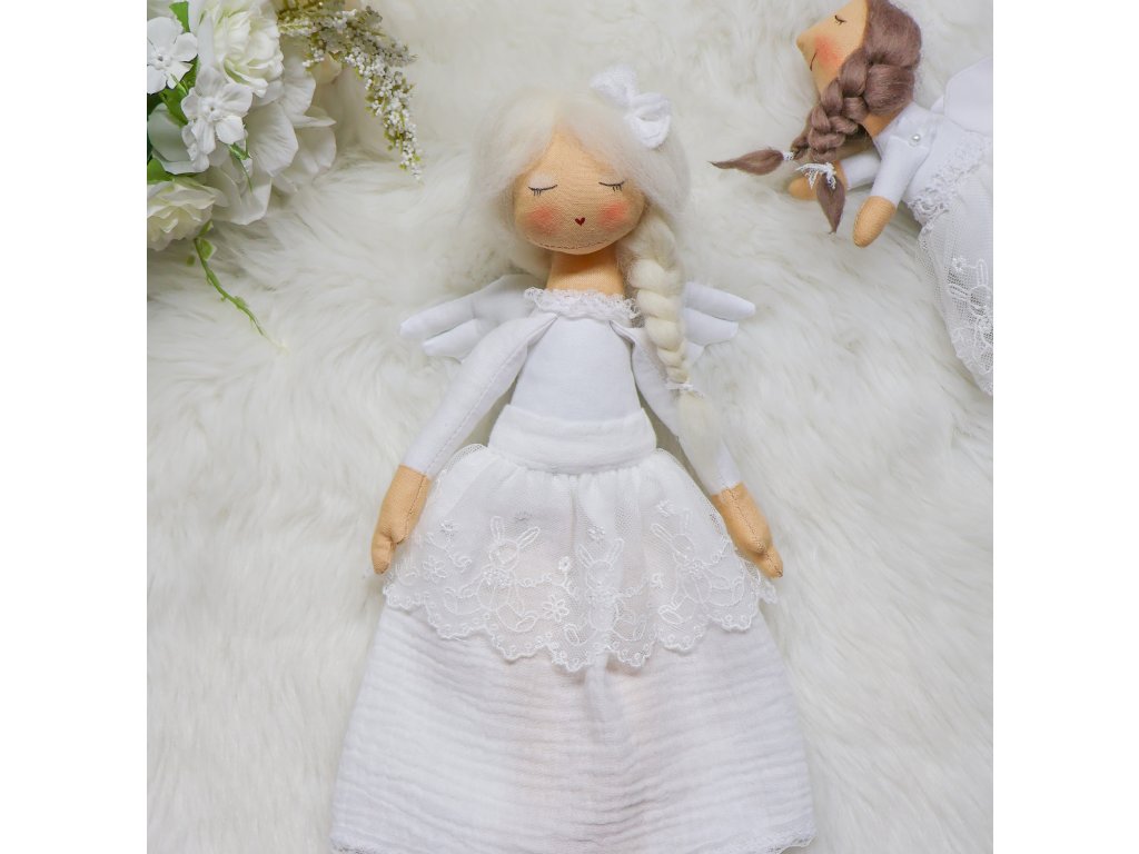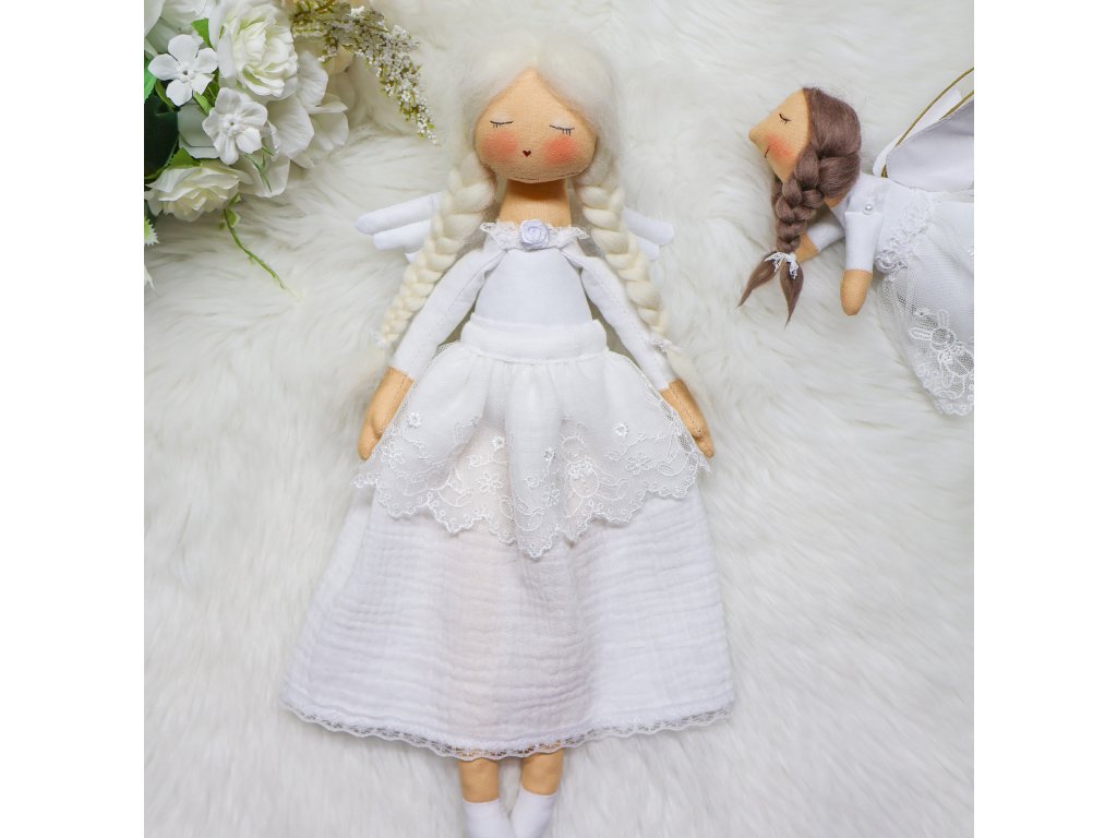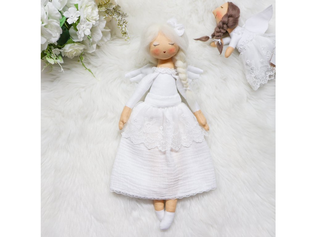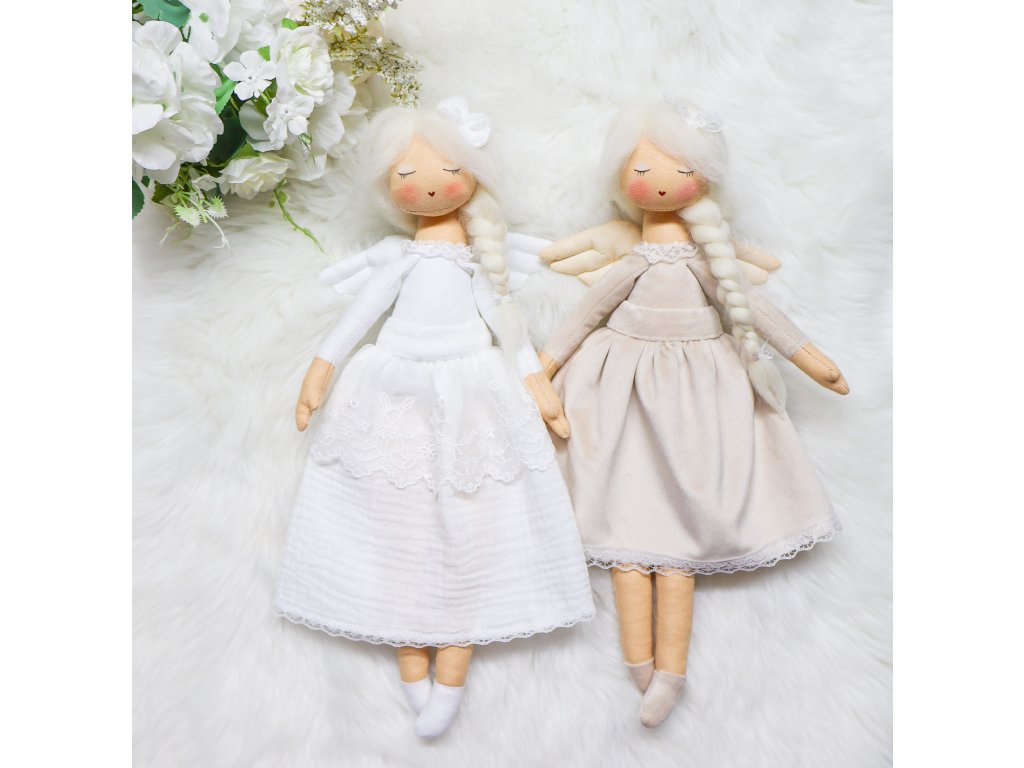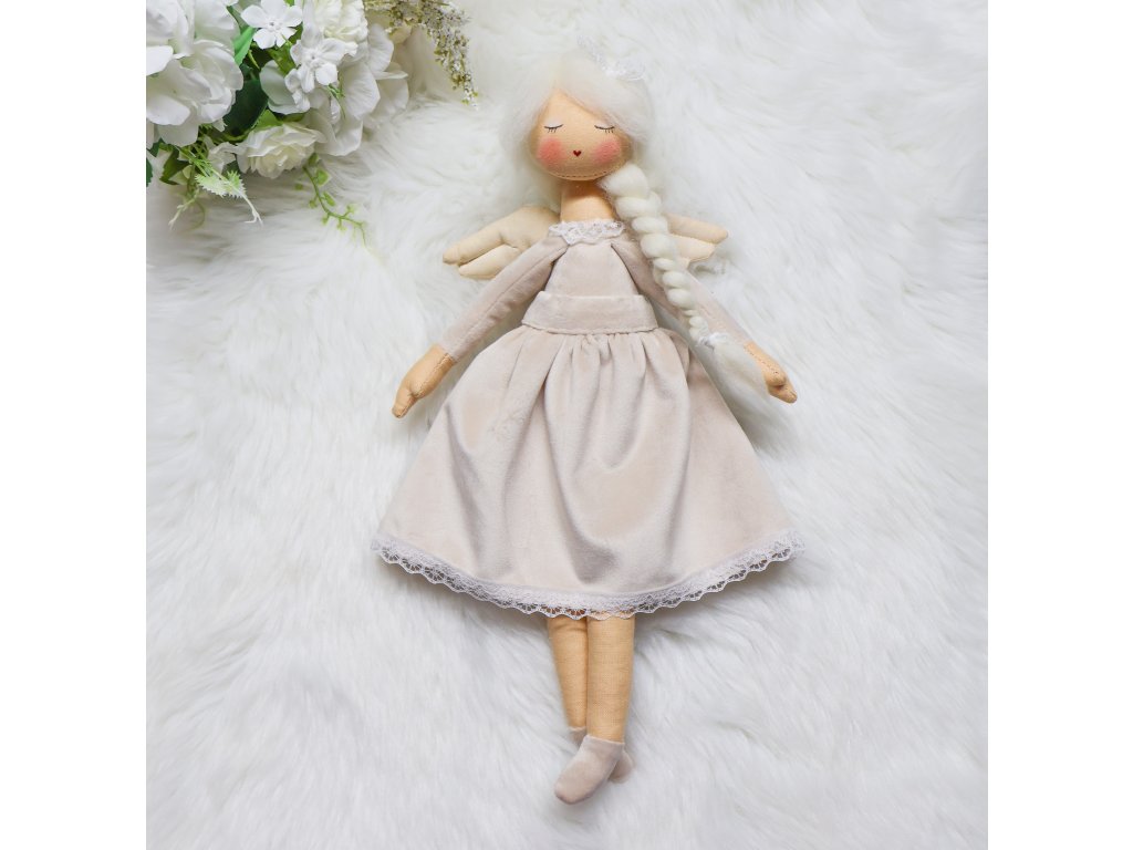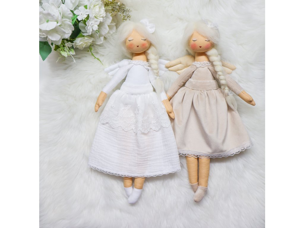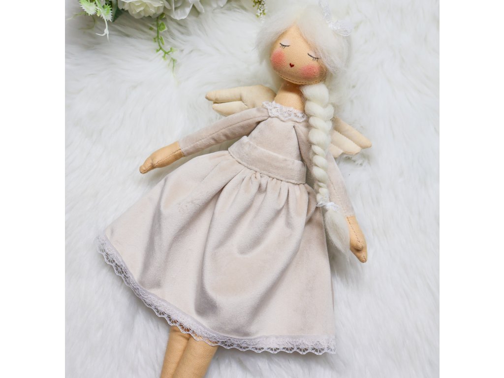 Každá andělka je jedinečná, ručně šitá s láskou z jemného mušelínu a hebkého béžového sametu.