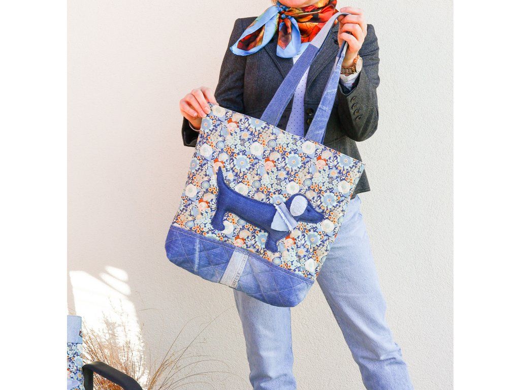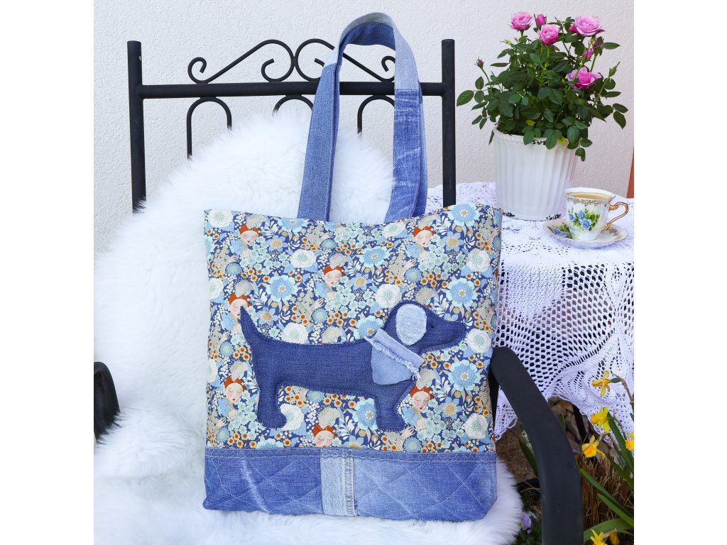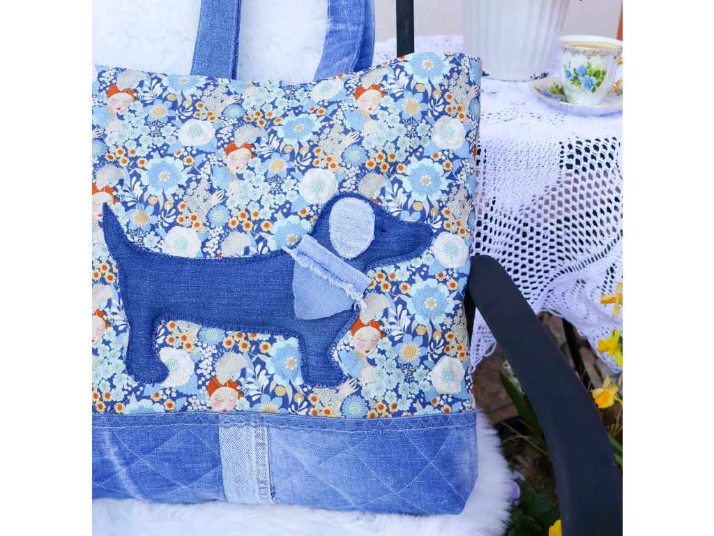 Patchworková kabelka s jezevčíkem - Džínový sen