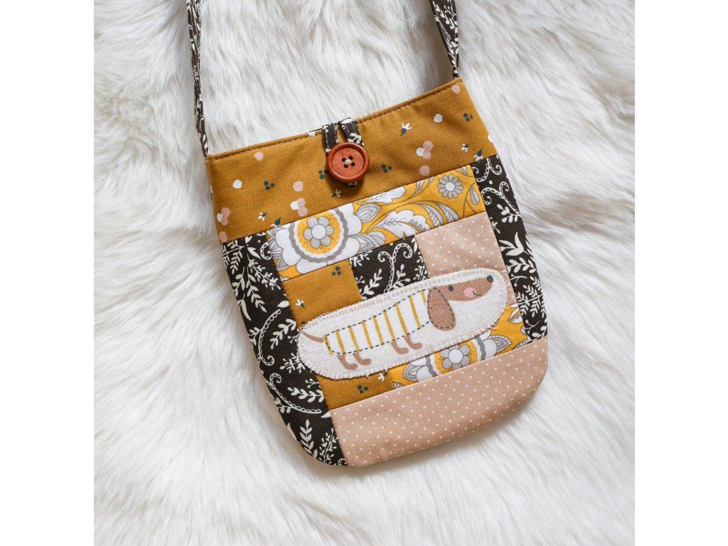 - Kabelka s jezevčíkem- s hnědým popruhem, který je dlouhý 114 cm
