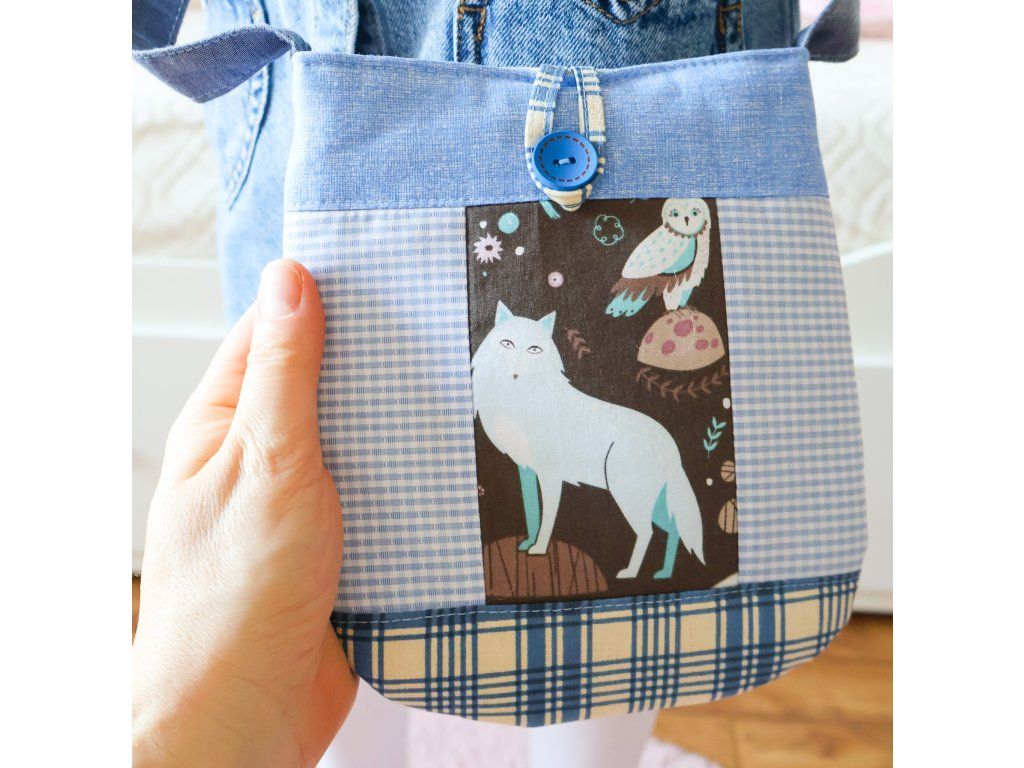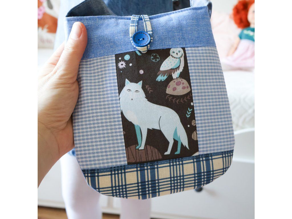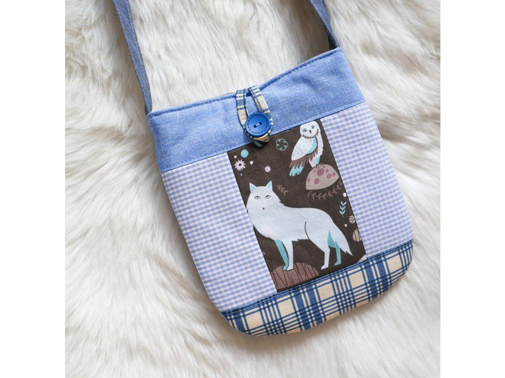 - Kabelka s vlkem - s modrým popruhem, který je dlouhý 122 cm