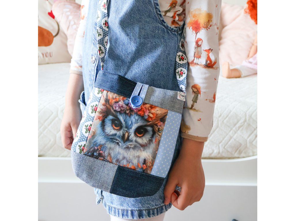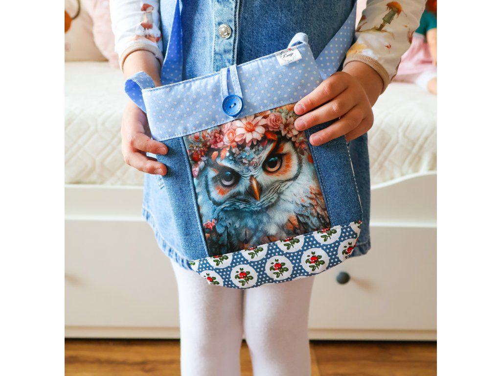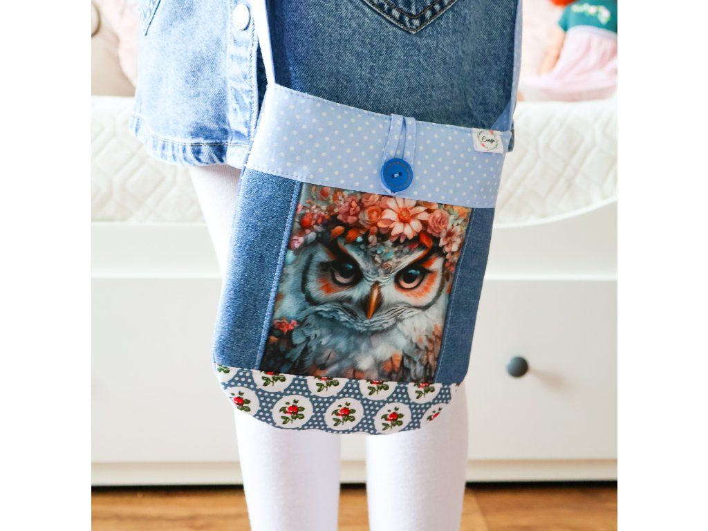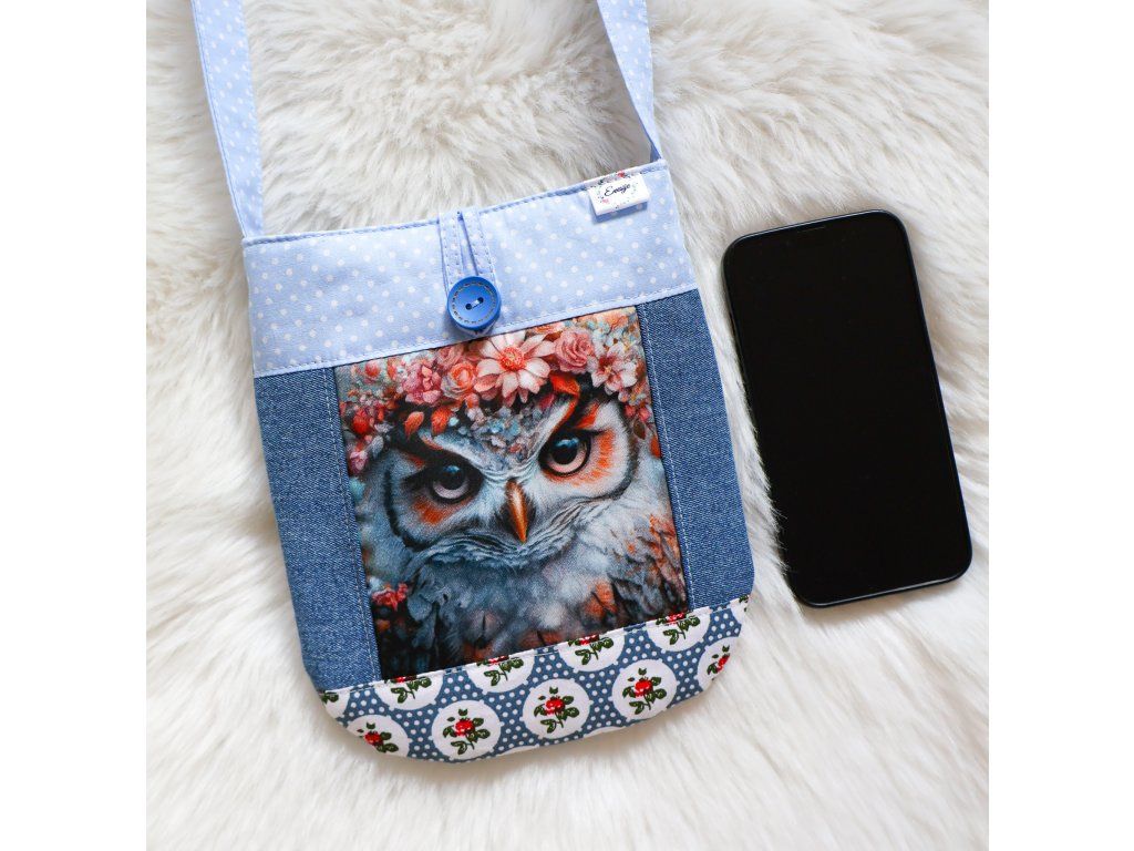 - Kabelka se sovou - s vázacím nastavitelným květinovým popruhem, který je dlouhý 85 - 100 cm