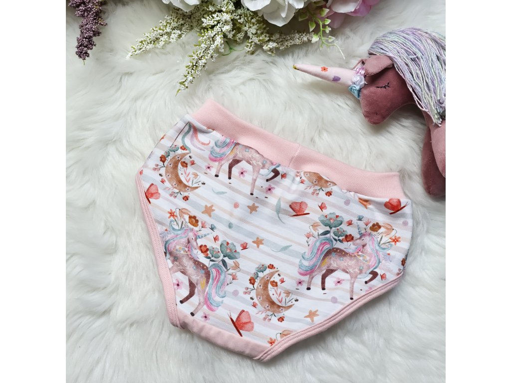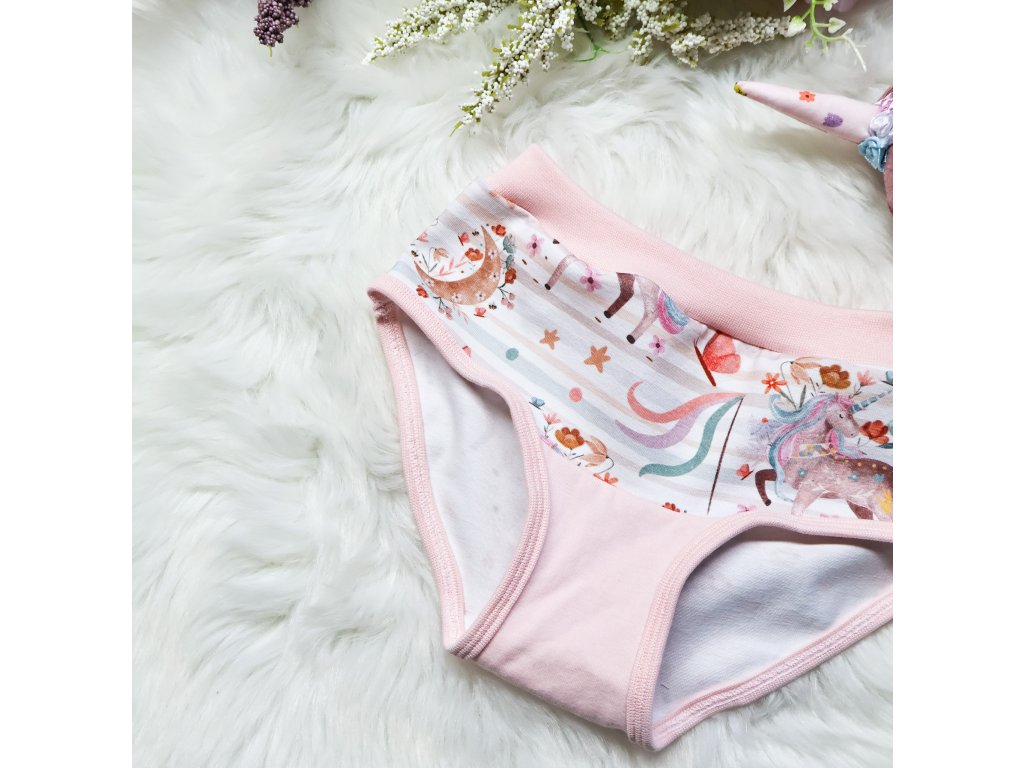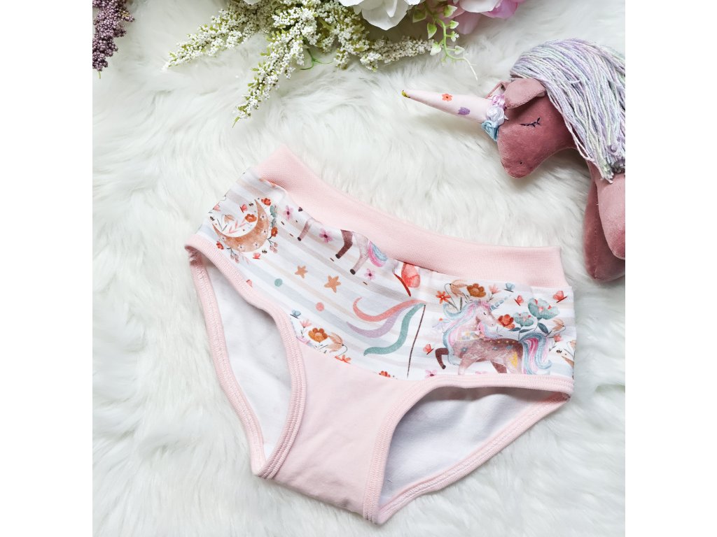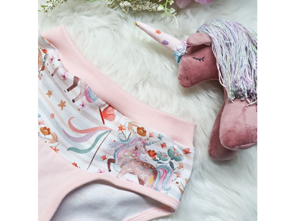 Vzor: jednorožci v kombinaci se světle růžovou.